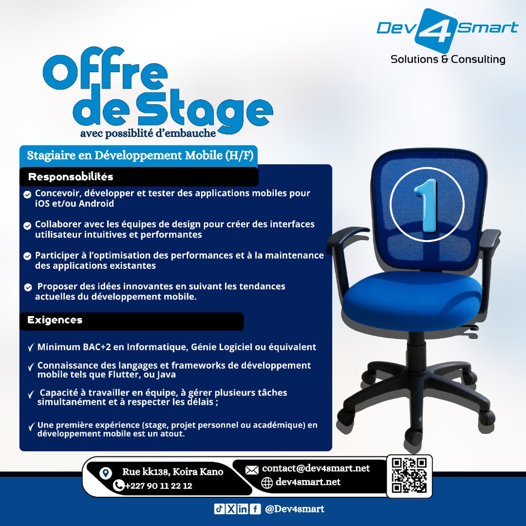 Niamey, le 07 Avril 2025 – Dev4smart, une startup technologique de premier plan basée au Niger et spécialisée dans le développement de logiciels Web & Mobiles, la Communication digitale, la fourniture des services télécoms à valeurs ajoutées, l'intégration de solutions en IA et fintech, participera au GITEX Africa.